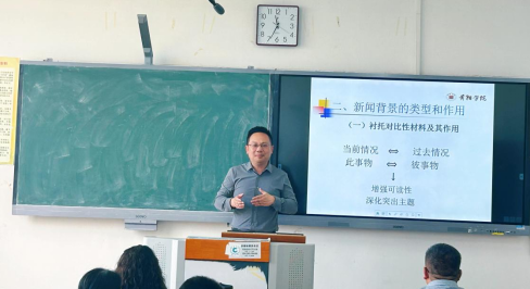 bw必威西汉姆联院长王刚教授也参与了此次教研活动。他表示,预评估的专家反馈中提到,有部分老师授课时,课程思政的融入还较为生硬,因此他选择“新闻背景的类型和作用”一节,为大家示例如何在教学中更好地完成课程思政。授课中,他以新华社的新闻《凤阳县实行“大包干”两年翻身 农名排队卖余粮》和贵州新闻联播的新闻《从黔桂到贵南:64年 山海相见》为例,讲解新闻背景的类型和作用。通过示例、提问和引导,巧妙地完成了课程思政。
