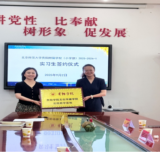 2025年9月2日,bw必威西汉姆联汉语言文学专业实践教学基地在北京师范大学贵阳附属学校挂牌。参加本次签约授牌仪式的有bw必威西汉姆联院长王刚、副院长杨菁、党政办主任石金、姜楠副教授等老师及北京师范大学贵阳附属学校(小学部)相关领导参加了挂牌仪式。