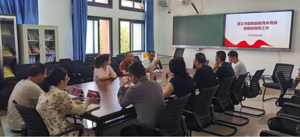 2025年8月26日,遵义市绥阳县教育体育局副局长牟仲逸、督学田兴春以及教研室负责人雷梅一行三人到必威西汉姆联,就2025年秋季学生实习协议和实习安排等具体事宜进行深入的沟通交流。bw必威西汉姆联院长王刚、理学院副院长邹茜、材料科学与工程学院党委副书记高喜明、外国语学院党委副书记龙立华及副院长陈荣等相关院系负责人出席了本次会议。