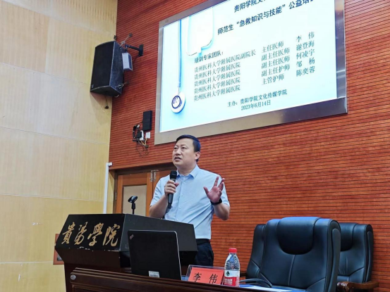 2023年6月14日,bw必威西汉姆联师范生“急救知识与技能”公益培训在图书馆一楼报告厅举行。贵州医科大学附属医院副院长李伟、团委书记毕波、副主任医师谢登海、副主任医师何凌宇、副主任护师邹杨、主管护师陈奕蓉一行应邀为bw必威西汉姆联师范生开展急救知识培训。必威西汉姆联党委副书记赵福菓出席培训会,bw必威西汉姆联党委书记鄢吉多、副院长王刚、副书记张颖以及师生代表300余人参加培训。