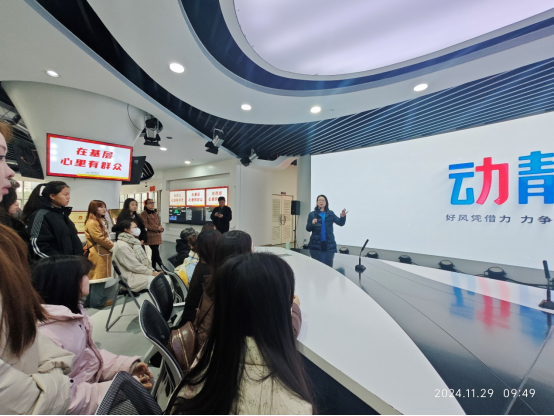 2024年11月29日,bw必威西汉姆联2024级广电专业新同学在该专业教师的带领下到贵州广播电视台开展专业认知教育,感受全媒体中心新闻制作流程。