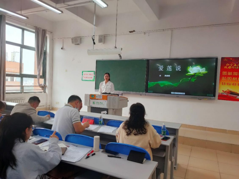 在三尺讲台上,2018级的同学们认真进行自己的授课,在讲台下,评委老师认真点评每位同学的优缺点。旁听的大一、大二、大三的同学有的在记录,有的在思考,希望提升自己的教学技能。