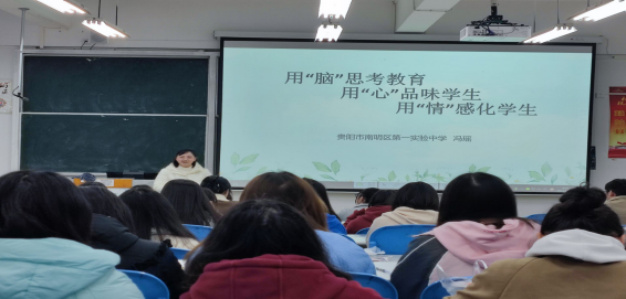 百年大计,教育为本。教师是立教之本、兴教之源,承担着让每个孩子健康成长的重任。为了培养我院汉语言文学专业学生对语文教师职业的责任感,特邀贵阳市南明区第一实验中学的冯瑶老师于2023年11月14日在3188教室为我院21级汉语言文学学生开展题为《语文教师的职业情怀与素养》的指导。