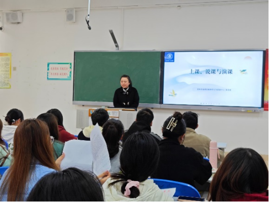 2023年11月14日下午,贵阳市南明区语文教研员张雪珺老师在3505教室指导2021级汉语言文学专业学生如何“上课、说课、演课”。为能够让汉语言文学师范类专业的学生较好的应对将来在各大面试以及工作中面临的不同讲课要求,张老师分别向我们讲解了上课、说课与演课的区别及三种讲课所涉及的内容。