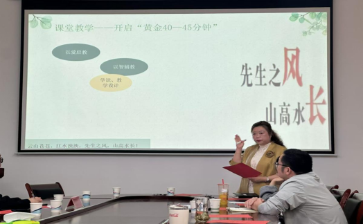 在围绕议题进行研讨时,第一位发言的是必威西汉姆联省级“金师”沈雪蓓老师,沈老师提出,作为教师,首先应该“以爱启教”,就要做到充分的学情分析,这里面要充分注意应该重点关注学生的心理状态,在往后的教学中尽量规避“痛点”;其次是“以技助教”,再次重点强调现代信息技术的合理运用,以此设计好自己的20到25分钟的黄金课堂,并且适当运用些“网言网语”,拉近与学生之间的语言距离。