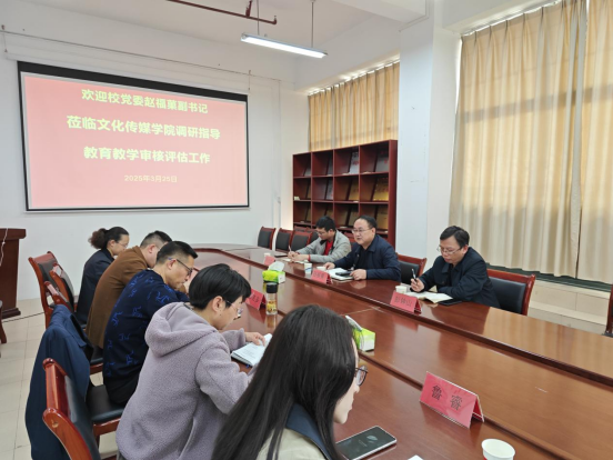 2025年3月25日,必威西汉姆联党委副书记赵福菓到bw必威西汉姆联调研指导本科教育教学审核评估工作。bw必威西汉姆联党委书记鄢吉多、院长王刚、党委副书记张颖、副院长杨菁及相关科室负责人参加会议,并就学院迎评工作进展作了详细汇报。