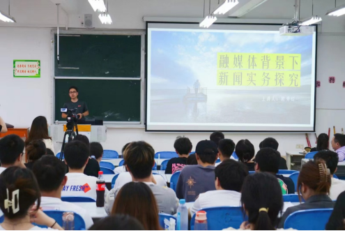 讲座上,欧秀灯给学生们分享了自己毕业以后的成长经历以及在新闻实务上的心得,重点讲解了摄影、摄像、时政新闻拍摄、新媒体运营等方面的经验和技巧,讲座干货满满。欧秀灯给同学们提出五点学习建议:要重专业知识学习;要广泛阅读;要提升表达和沟通能力;保持谦卑,多向他人学习;保持热爱,奔赴星辰大海。