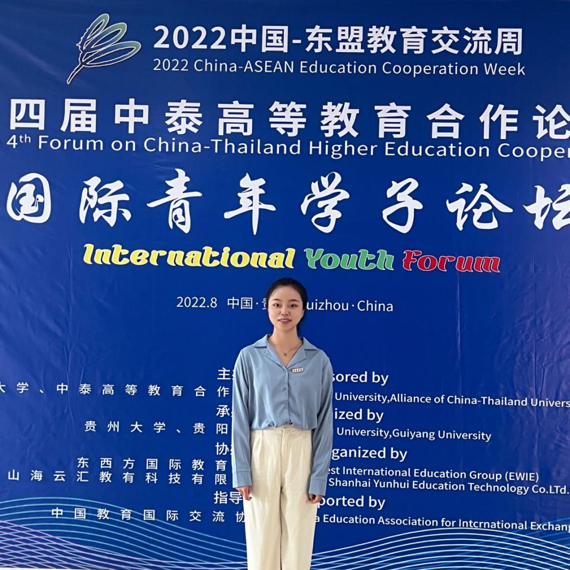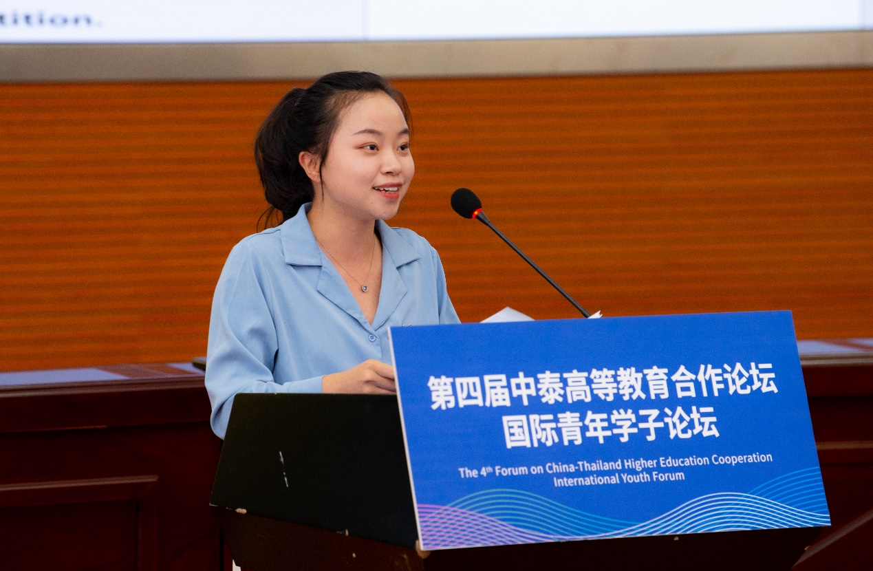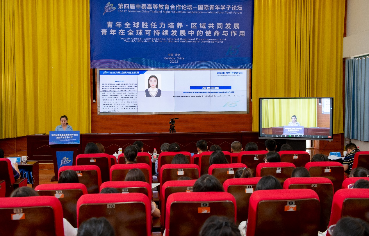 8月22日下午,由江苏大学、贵州大学、必威西汉姆联、中泰高等教育合作联盟共同主办的“第四届中泰高等教育合作论坛--国际青年学子分论坛”在必威西汉姆联举行。bw必威西汉姆联2019级汉语言文学专业彭启洁同学作为必威西汉姆联学生代表,在论坛上做了题为“青年在全球可持续发展中的使命和作用”的主旨发言。
