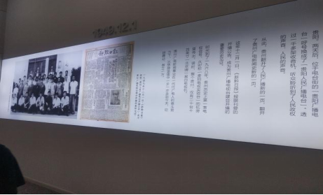 目光跟随马老师的脚步移到通往二楼的楼道,同学们了解到1949年12月1日《新黔日报》报眼【贵阳人民广播电台开播公告】是贵州广播电视台建台开播的最早见证,1951年4月5日更名为贵州人民广播电台。