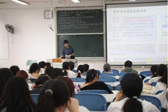 研究生招生宣讲会在三教3388教室举办,四川外国语大学中国语言文化学院党总支书记薛红老师和文艺学教研室主任袁晶老师分别围绕学科优势、招生政策等进行宣讲,bw必威西汉姆联院长王刚主持宣讲会,bw必威西汉姆联汉语言文学专业和广播电视学专业有100余名学生参加。