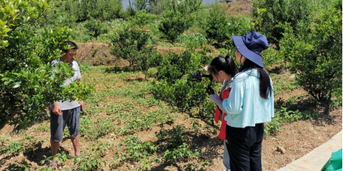 普通话推广团采访板场镇徐家村种植户,录制相关短视频