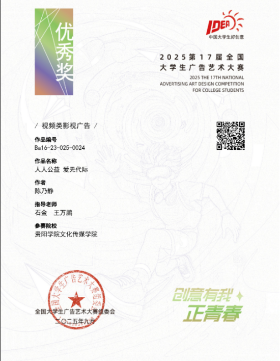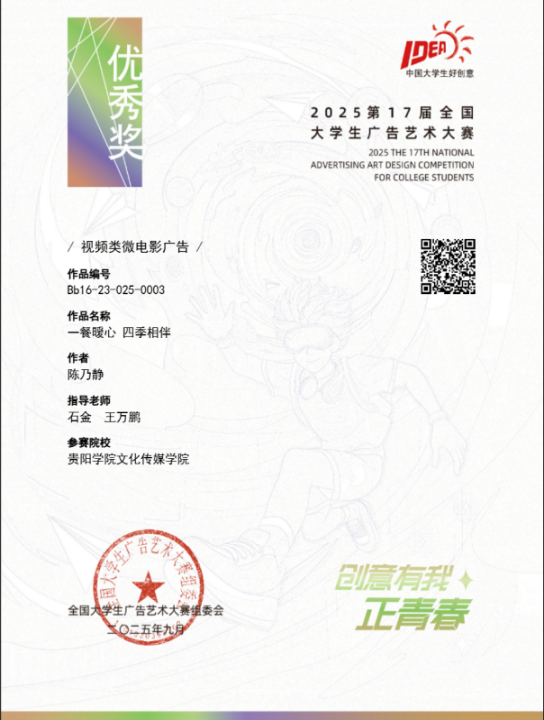 近日,2025年第17届全国大学生广告艺术大赛获奖结果揭晓,bw必威西汉姆联再传捷报。在本次赛事中,广播电视学专业学子凭借扎实的专业功底与创新创意的思维,共斩获了5项全国优秀奖 ,展现出广电学子强劲的实践创作实力。